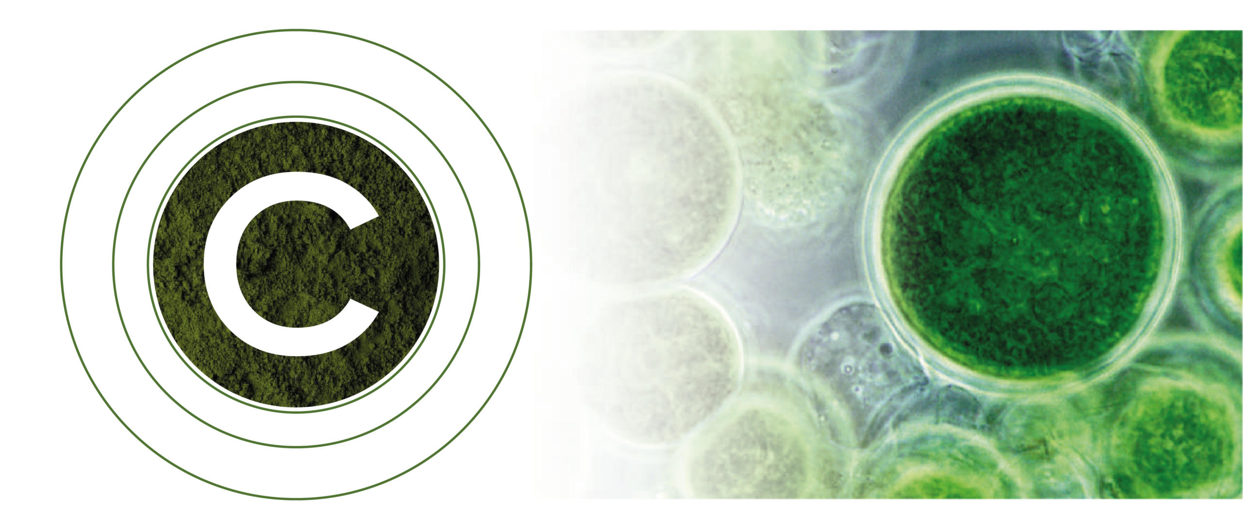 La Chlorella vulgaris est une microalgue vert clair 100 % naturelle. Elle résiste aux températures élevées et conserve ses propriétés organoleptiques inchangées. Elle est riche en composés bioactifs, notamment en caroténoïdes (lutéine, astaxanthine et fucoxanthine) ainsi qu’en oméga-3 (EPA + DHA).